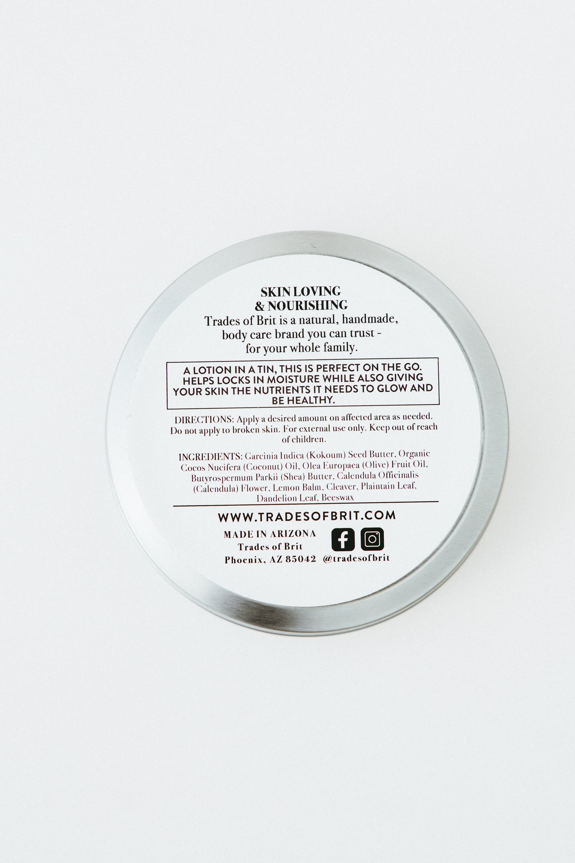 Garcinia Indica (Kokum) Seed Butter, Cocos Nucifera (Coconut) Oil*, Butyrospermum Parkii (Shea) Butter, Calendula Officinalis (Calendula) Flower, Melissa Officinalis (Lemon Balm) Leaf, Galium Aparine (Cleaver) Herb, Plantago Major (Plantain) Leaf, Taraxacum Officinale (Dandelion) Root, Olea Europaea (Olive) Fruit Oil, Cera Alba (Beeswax),