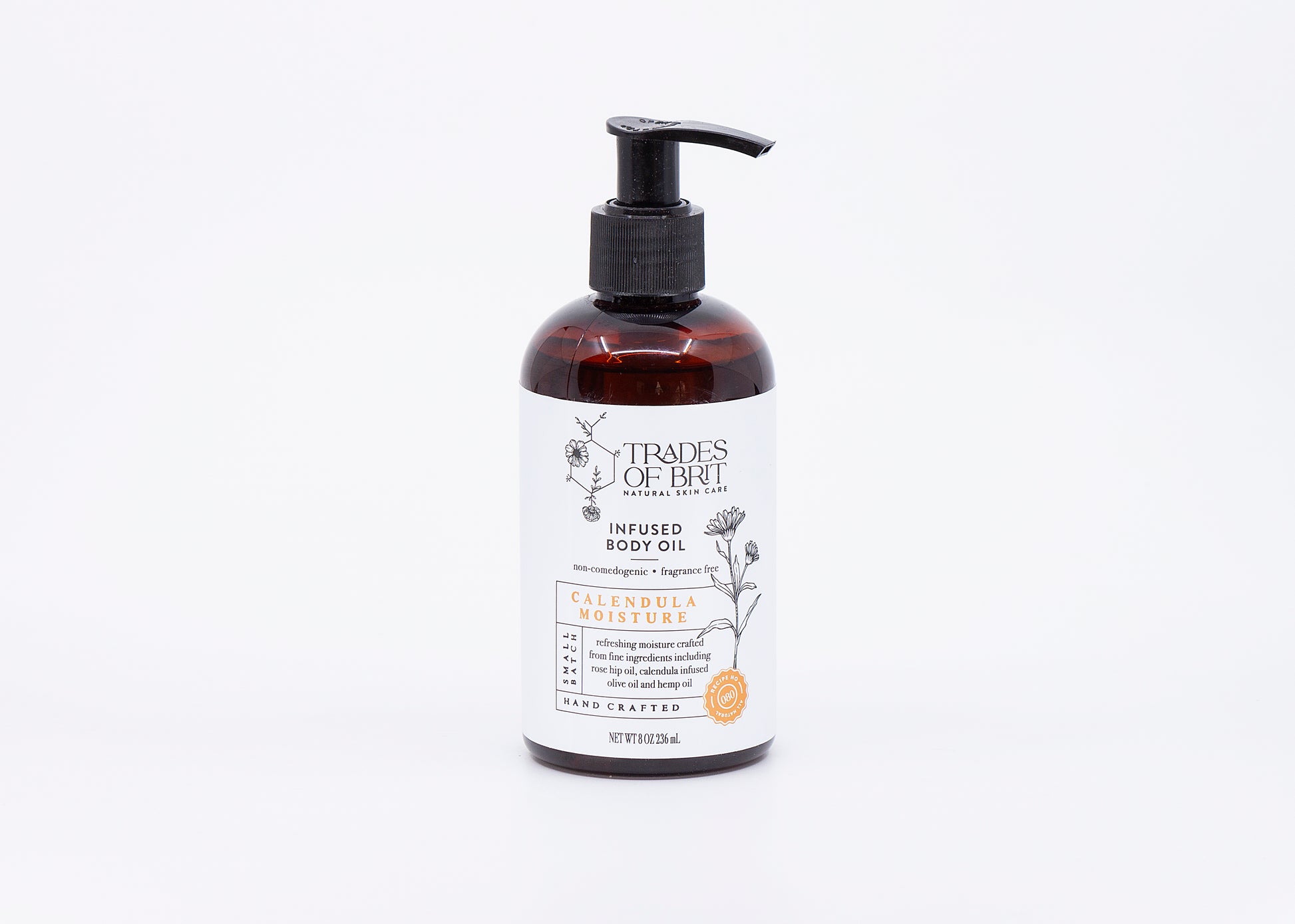 Trades of Brit Calendula Body Oil delivers deep hydration in a lightweight, non-greasy formula that soothes, softens, and revitalizes your skin. Infused with calendula and rosehip oils for nourishment and glow, it’s perfect for daily use or a luxurious self-care treat.