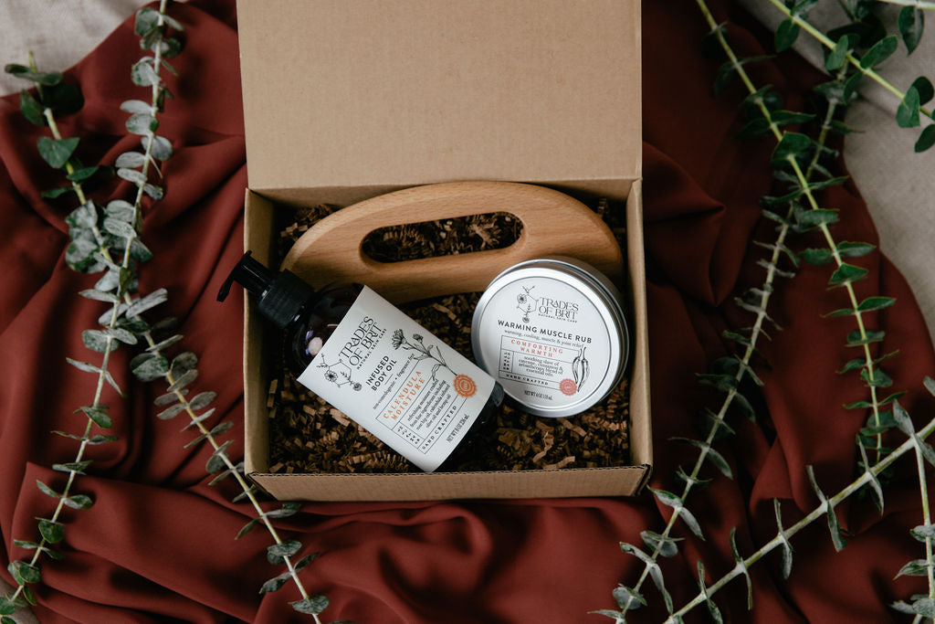 The Healing Touch Gift Set is your go-to for natural relaxation, deep muscle relief, and skin nourishment. Carefully curated with our Muscle Rub, Calendula Body Oil, and a handcrafted Wooden Gua Sha tool, this set is crafted for those seeking the ultimate in natural wellness and self-care.