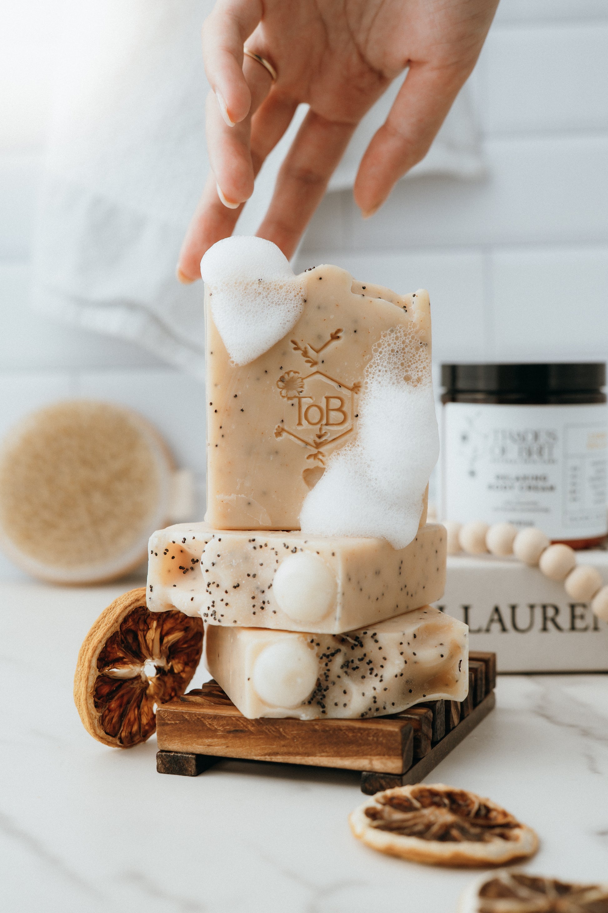Refresh and rejuvenate your skin with our Lemon Poppy Soap Bar. Made with colloidal oatmeal, honey, poppy seeds, and lemon powder, this bar gently exfoliates while nourishing your skin. Enjoy a bright, invigorating cleanse that leaves your skin smooth, radiant, and refreshed. Perfect for a daily dose of natural exfoliation and hydration!