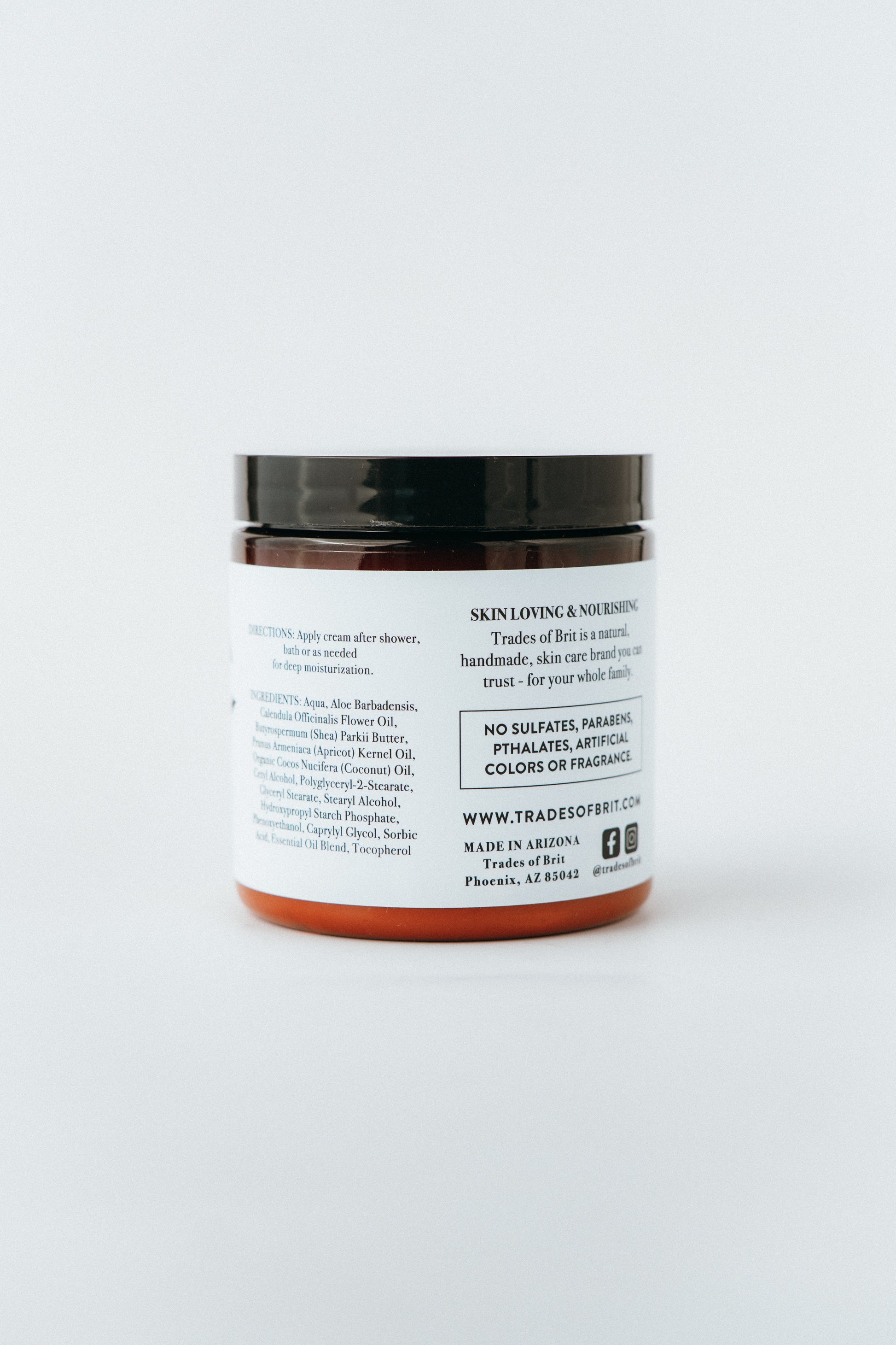 Aqua, Aloe Barbadensis, Calendula Officinalis Flower Oil, Butyrospermum (Shea) Parkii Butter, Prunus Armeniaca (Apricot) Kernel Oil, Organic Cocos Nucifera (Coconut) Oil, Cetyl Alcohol, Polyglyceryl-2-Stearate, Glyceryl Stearate, Stearyl Alcohol, Hydroxypropyl Starch Phosphate, Phenoxyethanol, Caprylyl Glycol, Sorbic Acid, lemon and lemongrass essential oil