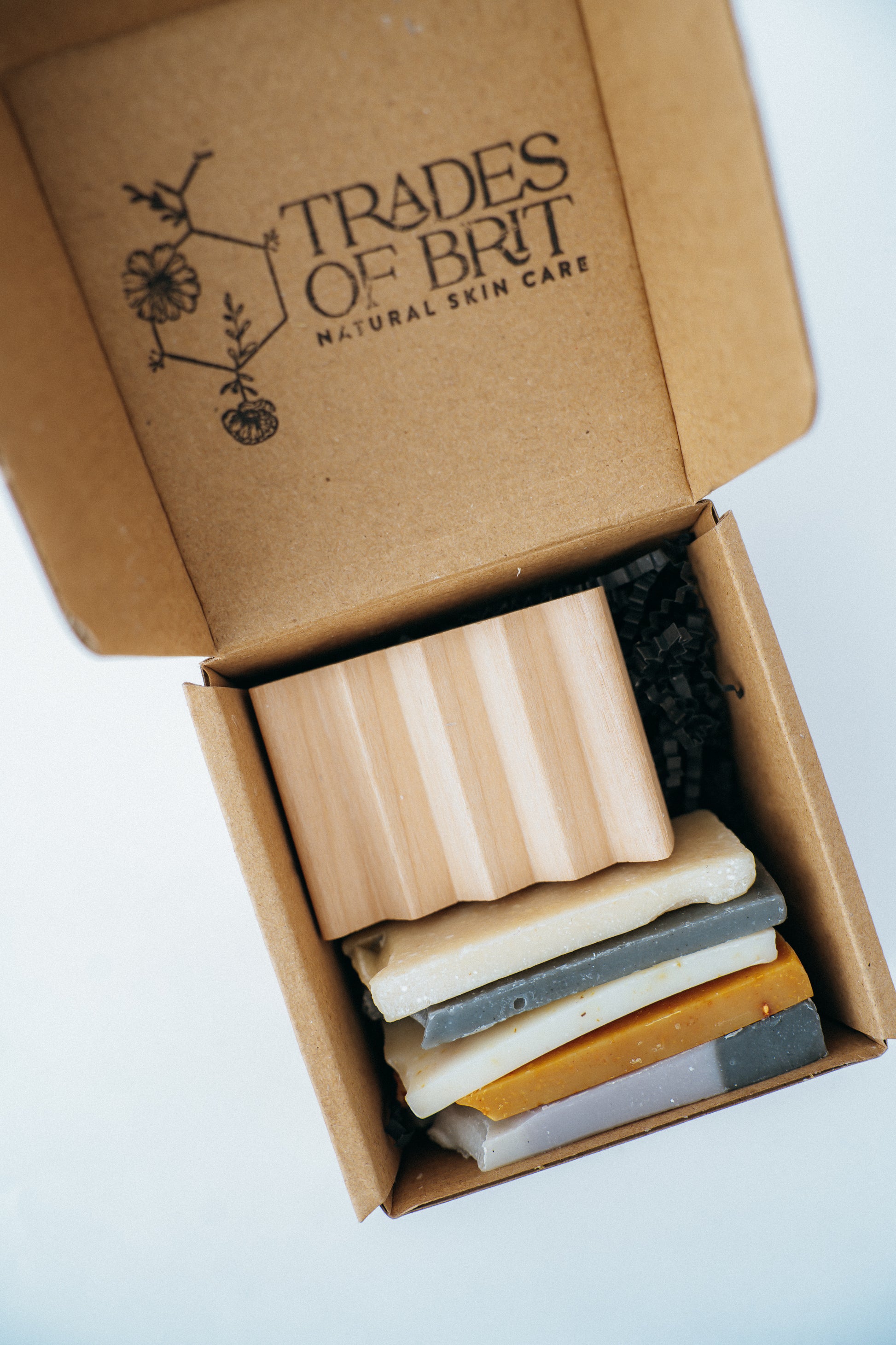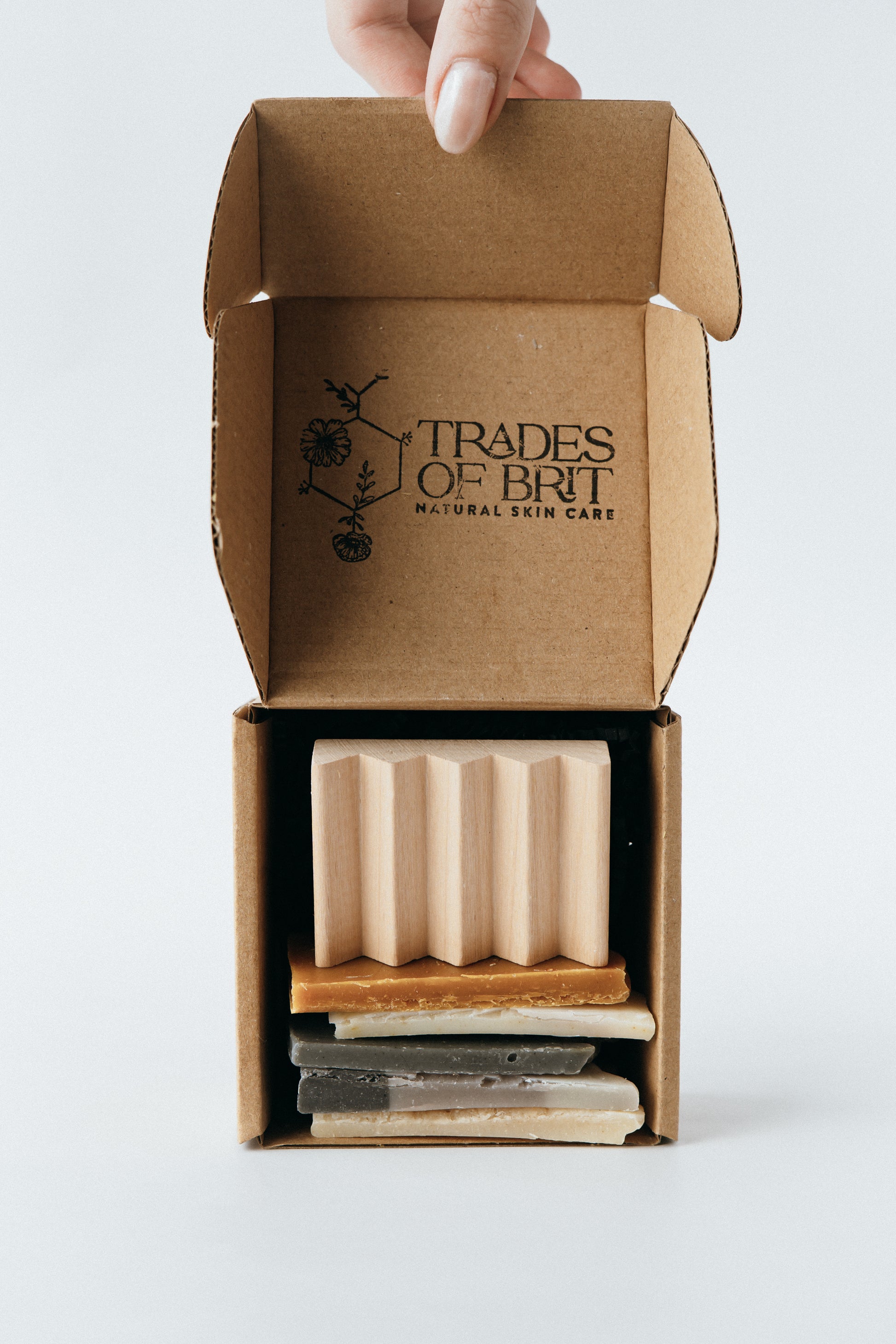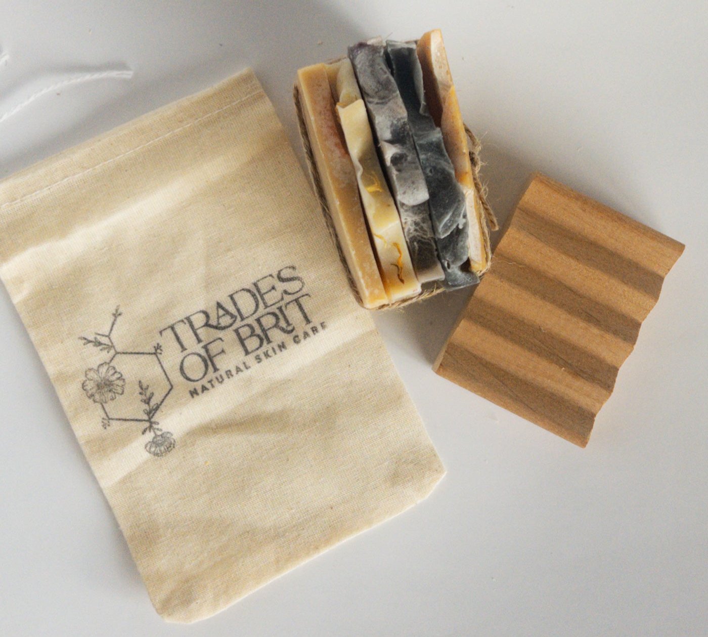 - The soaps come in a muslin bag or box with a hand stamped logo and tag